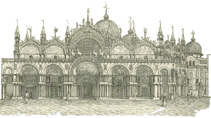 Il primo santo patrono della città fu S. Teodoro ma nell'anno 828 fu inumato il corpo dellapostolo San Marco, trafugato dal suo sepolcro ad Alessandria e traslato a Venezia. Per contenere tali spoglie, provvisoriamente sepolte in unapposita cappella nel Palazzo Ducale, venne edificata la chiesa che, dopo un incendio e numerosissime modifiche per adeguarsi al crescente prestigio della città, divenne la Basilica di S. Marco.